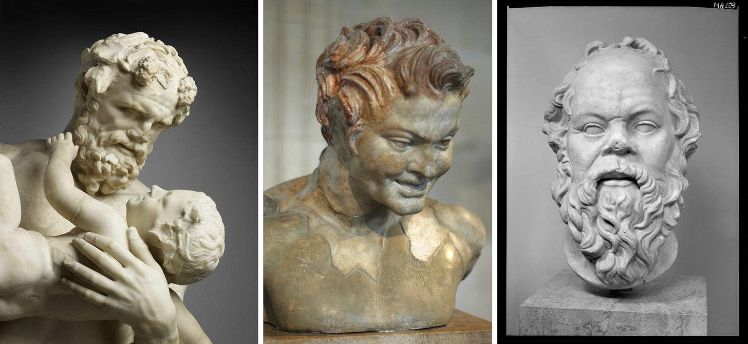 Antiquity has not transmitted only these archetypes to us. The Silenus is beautiful, the Faun is beautiful, even the Socrates is beautiful: This head is full of a certain beauty despite its little crushed nose, lippy mouth, and small eyes. It is not radiant, that’s true, with symmetry and the lovely proportions of its features, but it is animated by reflective thought and inner loftiness. The Silenus, the Faun, and so many other faces with character are ancient stone. We easily conceive how stone, bronze, and marble demand in the expression of some features a certain sobriety that is ugly and dry when imitated in painting. Painting distinguishes itself from sculpture through color, effect, and its accommodation of spontaneity, which allows for more exciting, less conventional details.