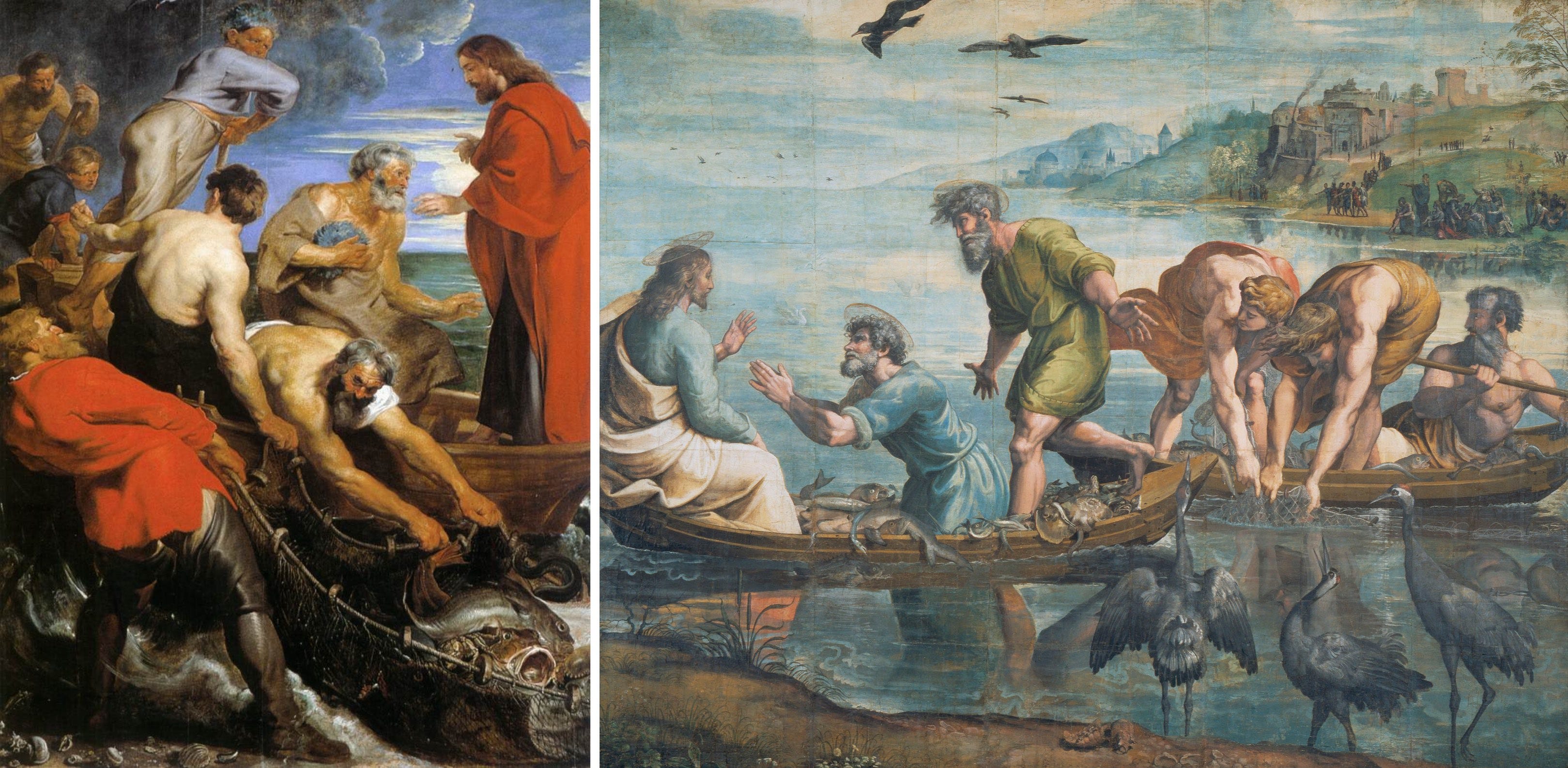 Rubens saw Italy and the ancients; but, dominated by an instinct superior to all the exemplars, he returned from the place where beauty was born and stayed Flemish. He found the beauty of the people and the apostles, simple men, in the Miraculous Draught of Fishes, where he painted Christ saying to Simon: “Leave your nets there and follow me; I will make you fisher of men.” I don’t believe the Man-God said this to Raphael’s well-groomed disciples while granting them the institution. Without the admirable composition, without this clever positioning that puts Christ all alone on one side and the apostles arranged together facing him, and that puts Saint Peter on his knees receiving the keys, perhaps we would be shocked by a certain affectation in the poses and dispositions. Rubens, on the other hand, gives us broken and disjointed lines, inelegant and tossed about drapes, which blight the sublimity and simplicity of his characters: He is no longer beautiful in this respect.1