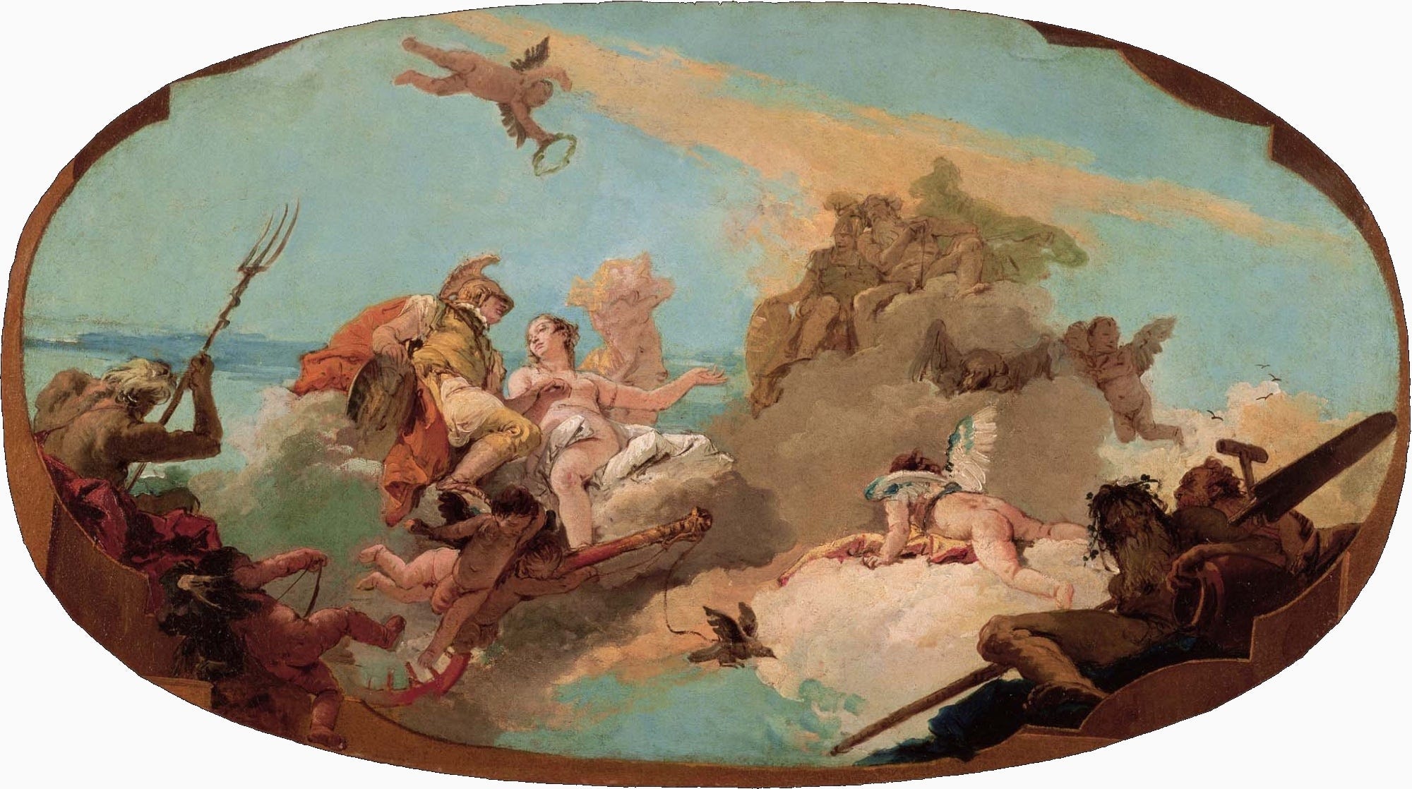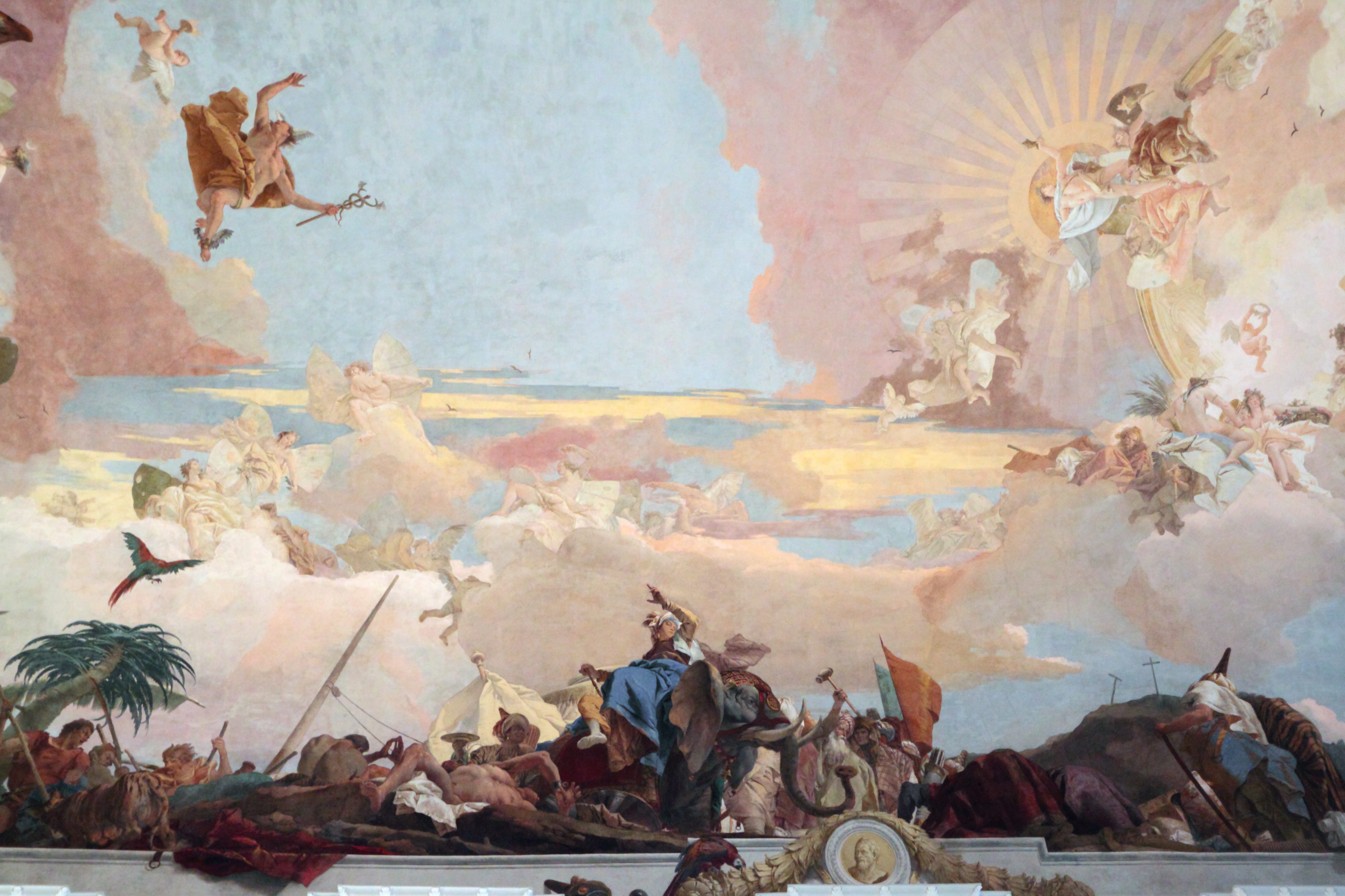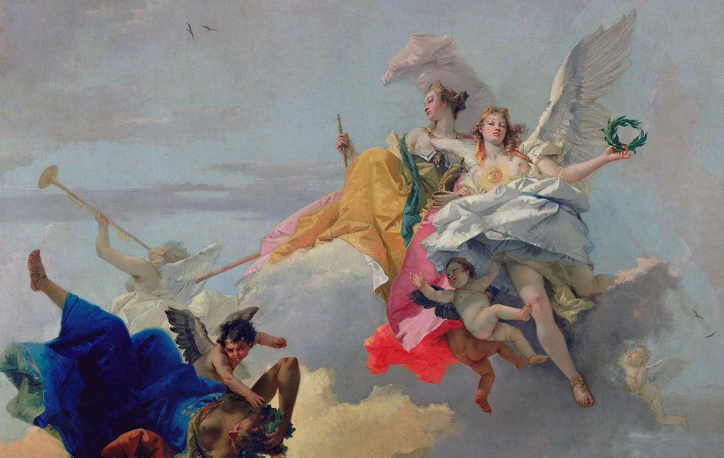 Compare his grand frescoes on ceilings and walls to others of the period and you can see that no other painter orchestrates both an ensemble cast and the spaces between them—whether ethereal clouds or pure light—with his delicacy and daring. In addition to the frescoes are certain large allegorical paintings on canvas6 that in content and form are similarly celestial.