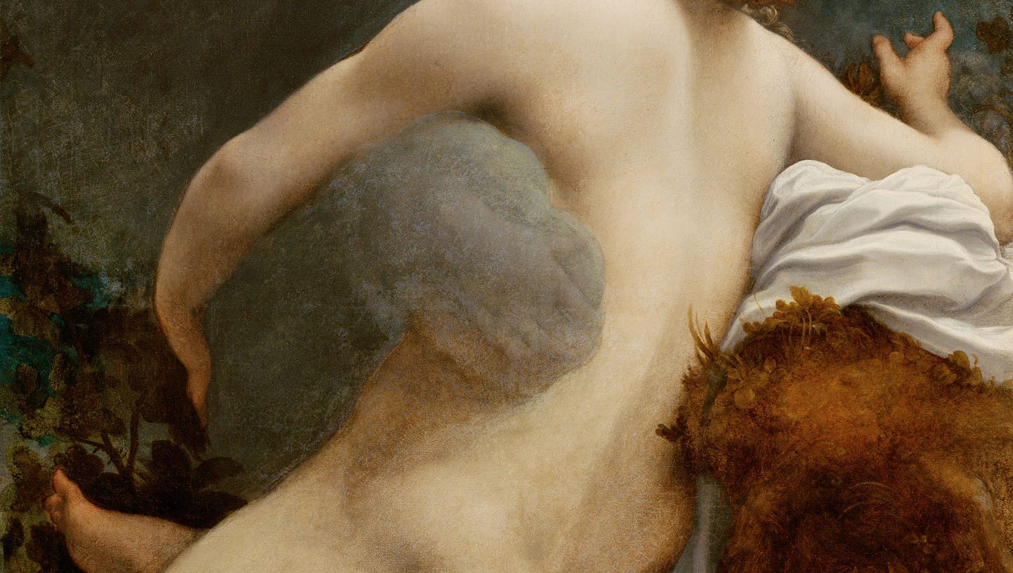 It’s inconceivable he found the trace of this quality elsewhere and developed it, either consciously or unconsciously, let alone learned it in another master’s workshop. Correggio’s mythological nudes4 are all different women in different situations, but not one has any of the kind of ceremony about her that you find in Titian’s beguiling goddesses, and that’s present in even the most frolicking nude by Rubens, whose love for the female form was devotional. Correggio’s lack of ceremony is what makes his nudes, the “sacred” as well as the “profane,” so gorgeous.